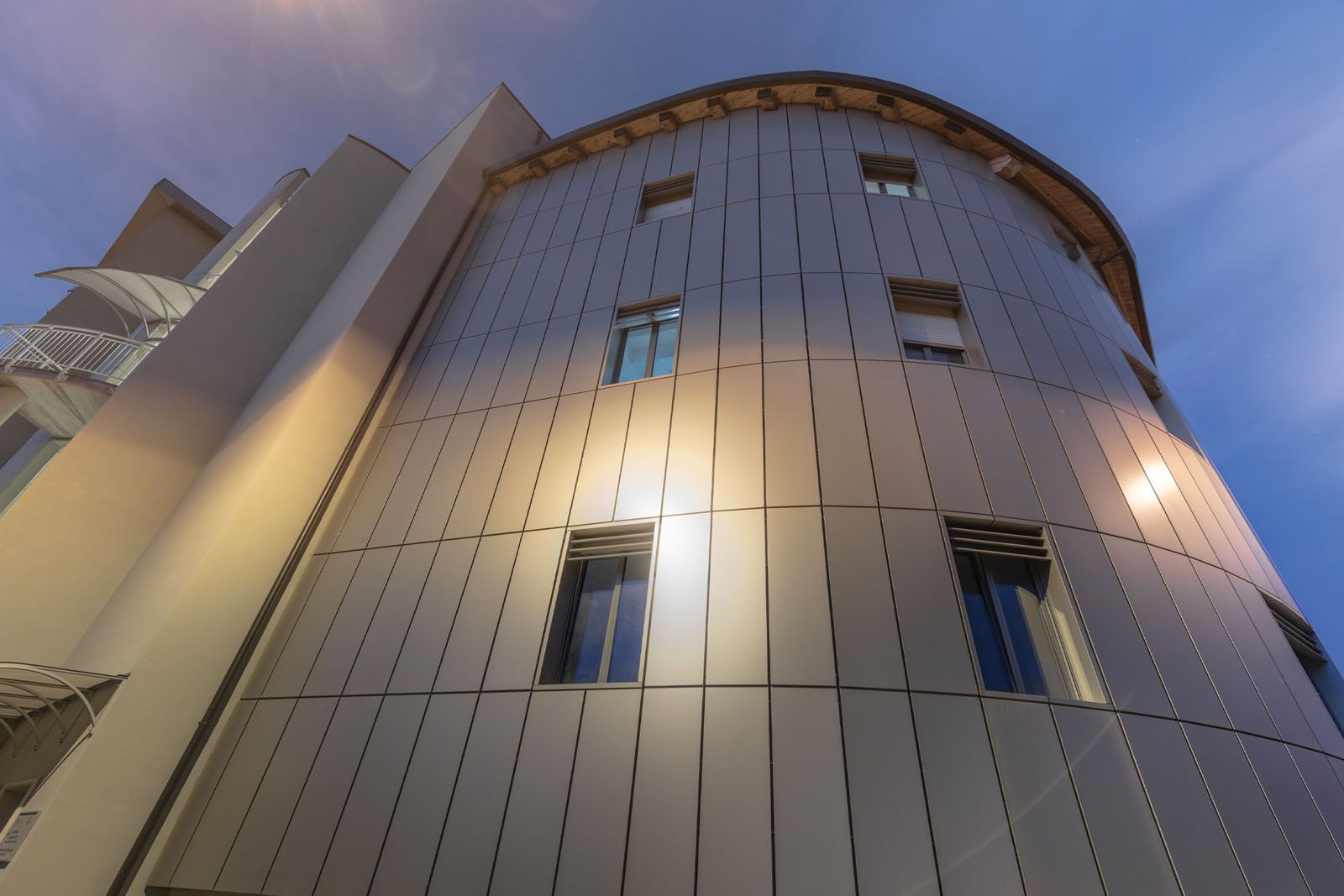 Il lavoro, affidato al Conscoop, ha riguardato l’ampliamento, la riqualificazione e la trasformazione del precedente Ospedale di Meldola in Centro Oncologico, unitamente alla costruzione del nuovo bunker destinato agli acceleratori lineari radioterapici e, in fase successiva, la realizzazione della radio farmacia. L’intervento ha comportato, non solo la ristrutturazione esterna dell’ospedale esistente, delle facciate e dell’installazione di una nuova copertura metallica a falde semicilindriche ma, altresì, il restyling nelle sue distribuzioni funzionali degli spazi interni.