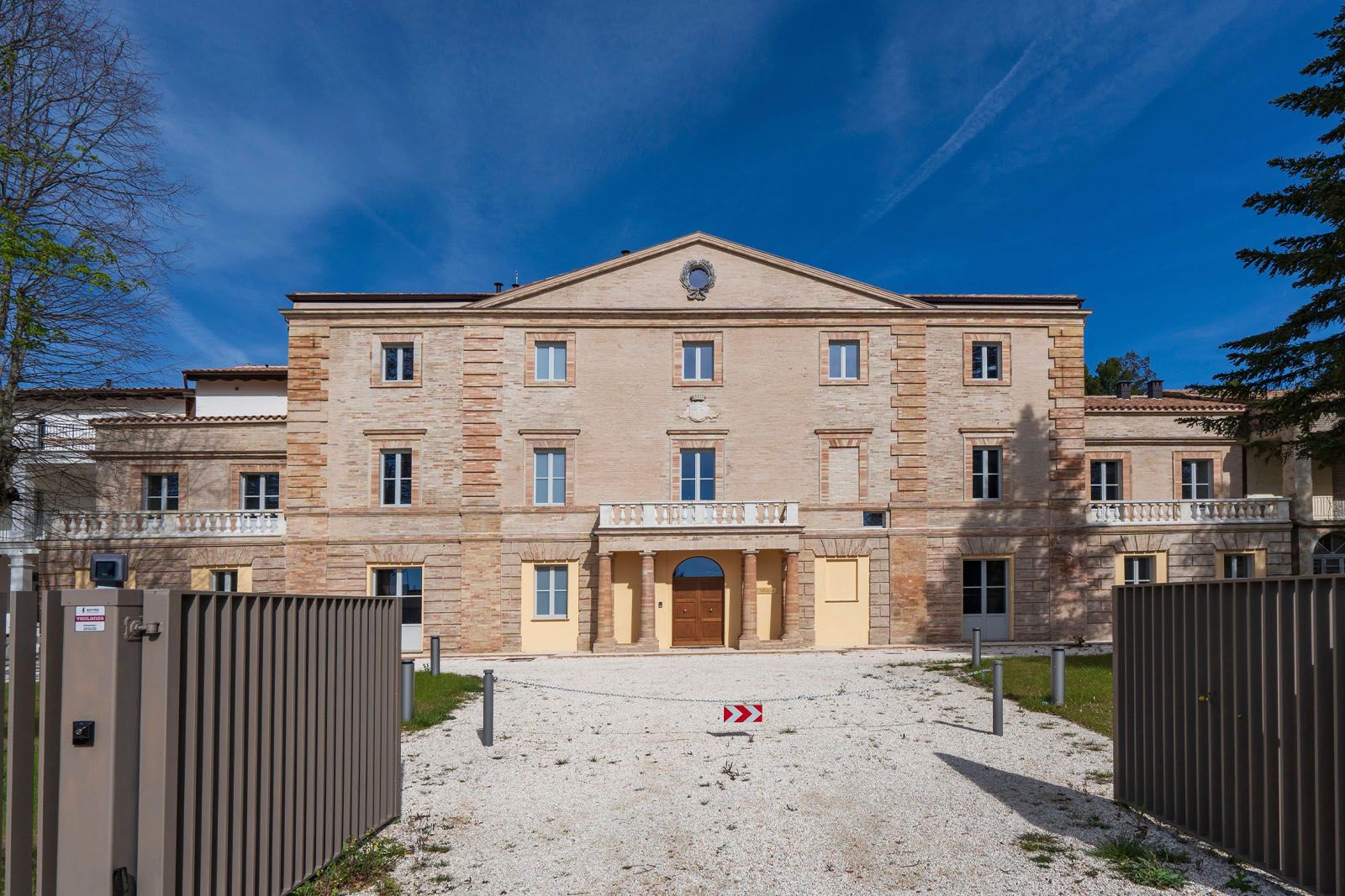 Il tutto, con un fronte costituito da un portico che fronteggia l’ingresso e il cui ritmo e profondità sono ripresi dalle proporzioni dell’esistente ala sinistra della villa. Il prospetto che affaccia sulla corte retrostante, si caratterizza come vero e proprio secondo ingresso all’auditorium pensato per nobilitare il retro dell’intero complesso, una vera e propria piazza dotata di quinte capaci di ospitare eventi. La sala auditorium è costituita da una altezza di due livelli poiché la sua sezione è in parte inclinata per permettere una adeguata vista del palcoscenico.